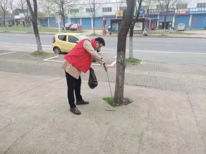 志愿者們來(lái)到轄區(qū)海棠路段手持鐵夾和垃圾袋,對(duì)道路沿線兩旁人行道、綠化帶里的生活垃圾、衛(wèi)生死角逐一清理。