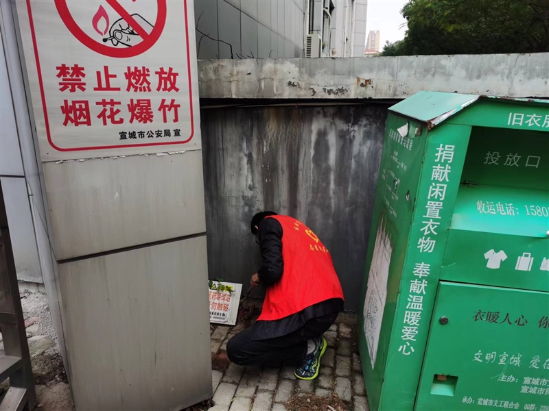 活動中,志愿者前往辦公區(qū)和社區(qū)公共區(qū)域進(jìn)行衛(wèi)生清掃,重點(diǎn)對管道出入口、綠地、車庫等區(qū)域投放滅鼠藥,并做好安全提醒告知工作,為辦公區(qū)和社區(qū)營造了一個(gè)干凈、健康的環(huán)境。