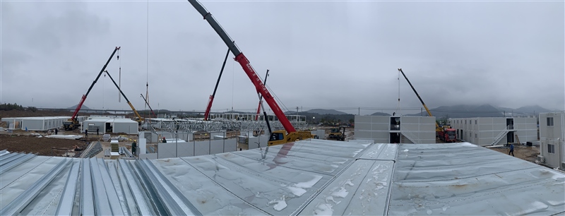 隔離點(diǎn)項(xiàng)目建設(shè)離完工僅剩十余天,自1月21日開(kāi)工以來(lái),各參建方努力調(diào)配一切可用的人力、物資,在全力保障項(xiàng)目建設(shè)的同時(shí),努力節(jié)約采購(gòu)成本。今日,施工現(xiàn)場(chǎng)近300人作業(yè),變壓器已安裝完成,打包房、板房、折疊房及水電設(shè)備等安裝進(jìn)展迅速。